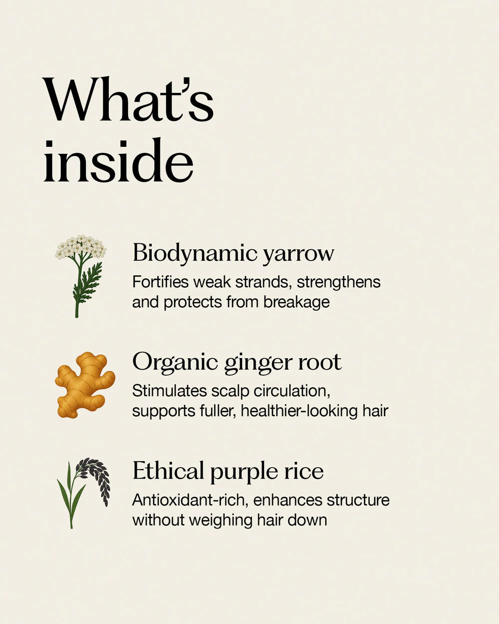 بمزيج من الزنجبيل الحيوي، نبات الألدر العضوي، والزيت العطري من الليمون، يعزز الدورة الدموية في فروة الرأس، يقوّي البصيلات، ويمنح الجذور دفعة طبيعية ترفع الشعر من الداخل.